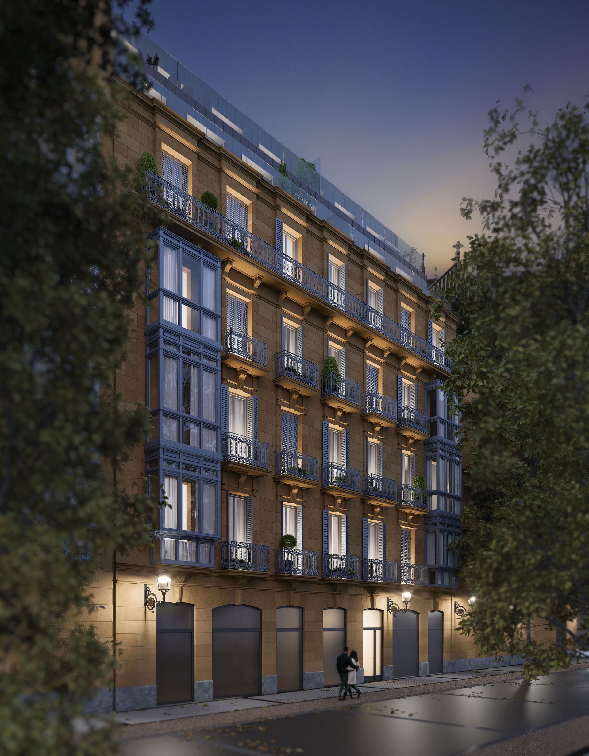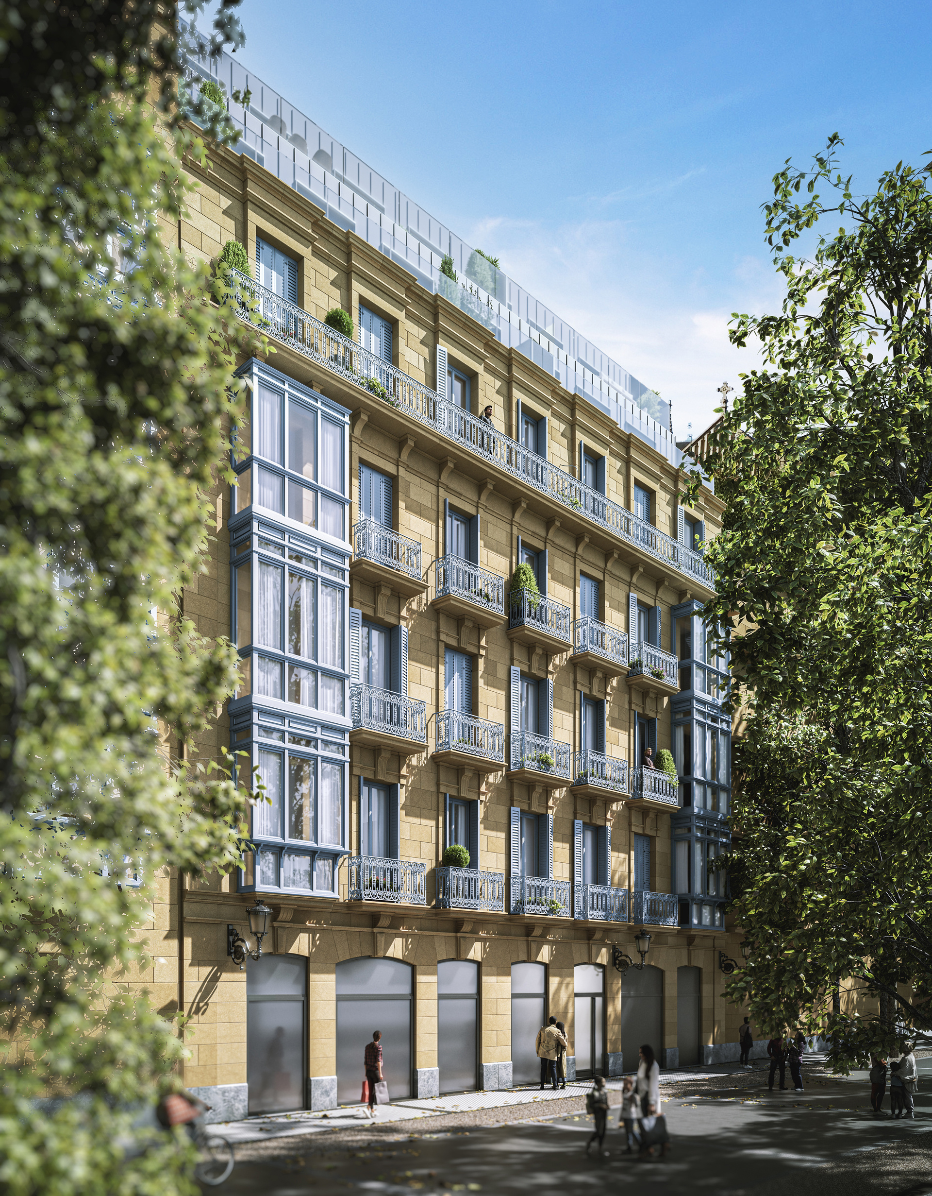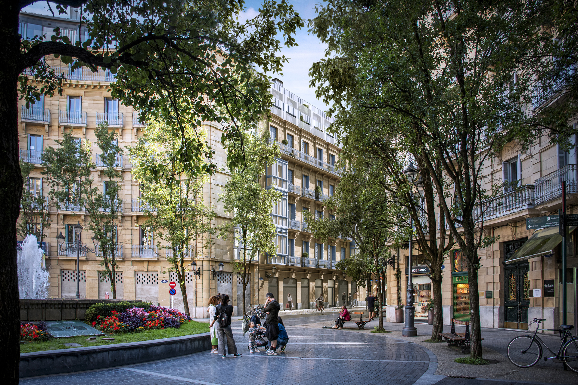 Rehabilitación integral de un edificio histórico en el corazón de Donostia, junto a la Catedral del Buen Pastor. El proyecto combina la elegancia de la arquitectura clásica con una ampliación moderna de dos plantas. Interiores de alto standing, con techos altos con molduras, suelos en espiga y murales decorativos que evocan la tradición del edificio.