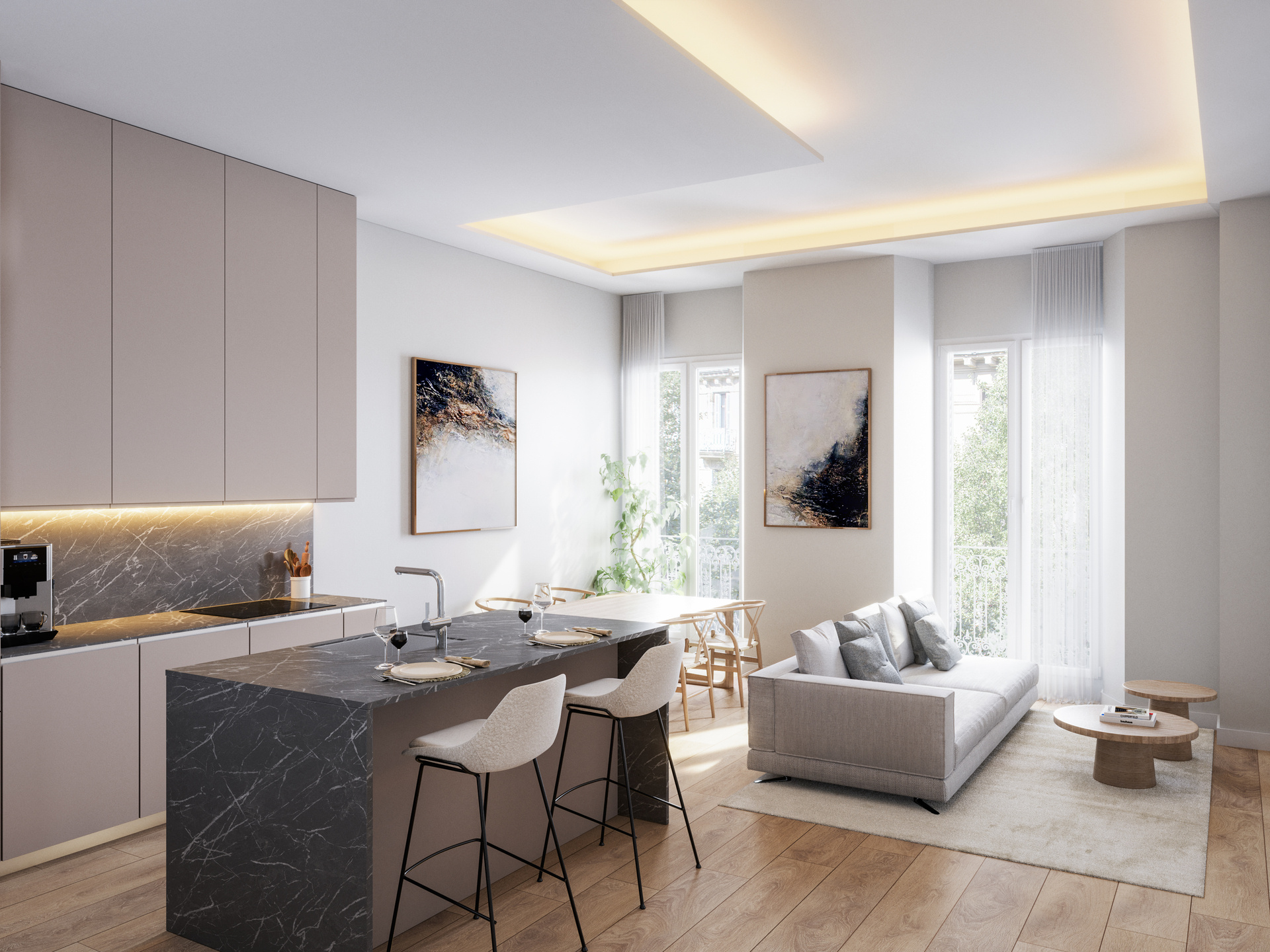 Imagen /content/alfonso-viii/AlfonsoVIII_Salon_Cocina_Atico_1_C_Final.jpg del proyecto Alfonso VIII